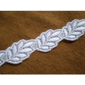 幅約2.2c 光沢感のあるシロのエレガントなリーフ柄の綿レース 3M