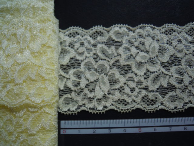 人気の花柄 キイロのストレッチ・ラッセルレース。