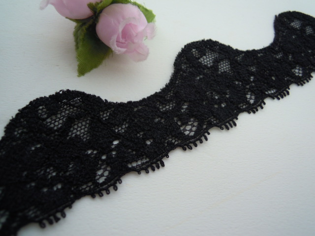 人気の花柄 クロのストレッチ・ラッセルレース。