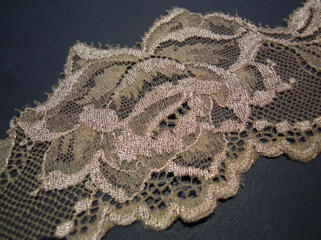 エレガントな薔薇柄!人気のモカチャ ストレッチレース 3M