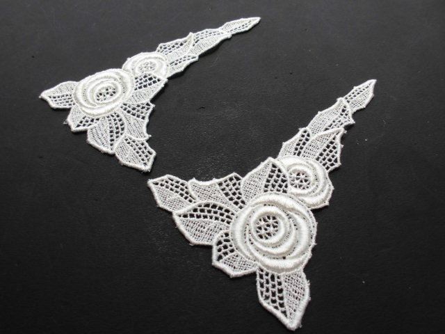 メッチャ繊細でエレガントな人気の薔薇柄 ケミカルのアップリケレース 3組6枚入り