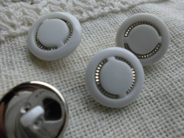 約15mm 流行のボタンイヤリングに如何!?メッチャ、エレガントなシロとシルバーのカラーボタン 4個入り