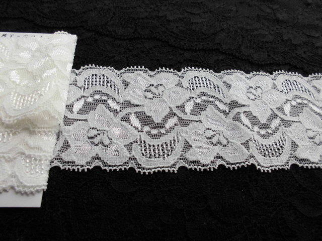 ハンパ物!在庫処分! オフシロの可愛い花柄の高級ストレッチラッセルレース 1.5M