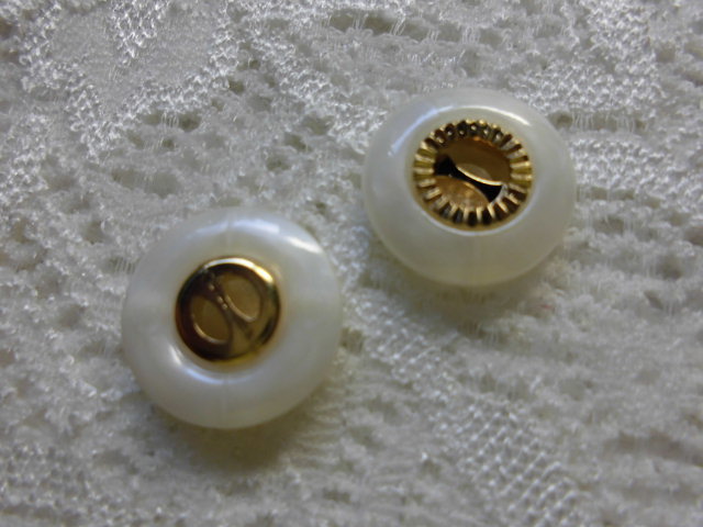 約15mm 流行のボタンイヤリングに如何!?エレガントなオフシロとゴールドのカラーボタン 4個入り