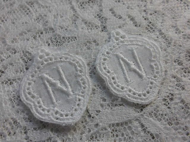 アイロン接着!!!レース工房☆太陽のぴたっとレース 手作りマスクのアクセントに如何!綿のイニシャルモチーフレース N 2枚 [PT-00167 送料最安値 定形郵便110円]