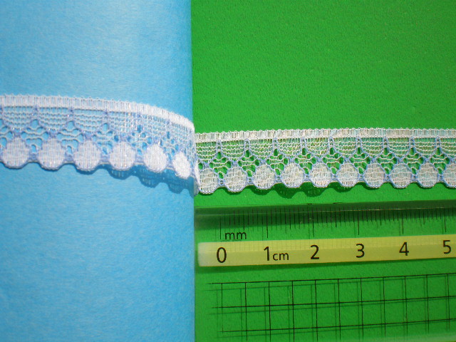 幅1.3c シロ地にブルーの可愛い花柄のプチラッセルレース 15M