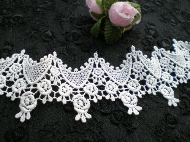 幅約3.2c 人気の薔薇柄 オフシロのコットンアクセサリーレース