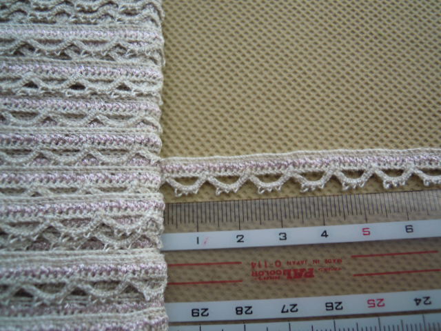 麻混メタリックトーション ピンク 幅約0.9c人気のレース 3M