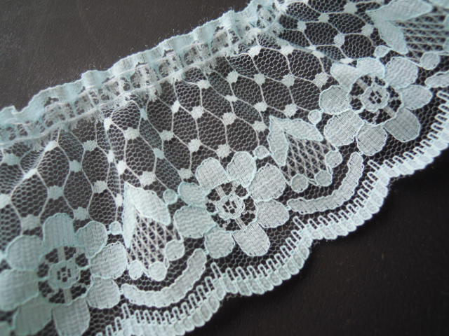 ホーム | 細巾レース(反売り) > ラッセルフリルレース幅約6.5c お買い得な人気の水色のフリル 10M