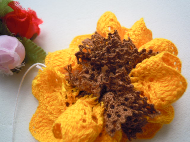 ホーム | お求めやすいワンコイン(100円)レース > トーションとブレード簡単にレースの花が作れるフラワートーション!!! ブラウンイェロー  30c