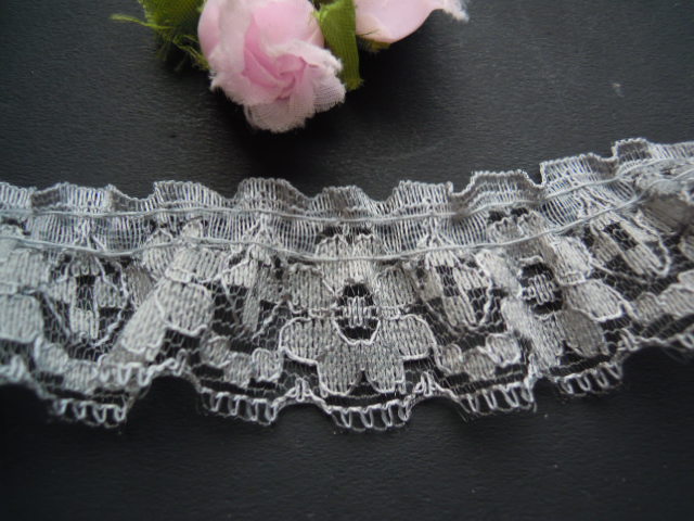 ホーム | スリーコインズ(300円)・レース > ラッセルフリルレース幅約3c 人気のグレー色のラッセルフリル 5M