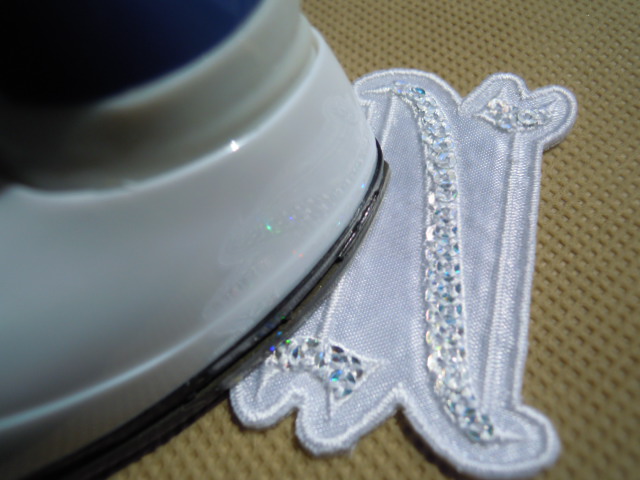 ホームレース工房☆太陽と京都の老舗スパンコールメーカーさんとのオリジナルコラボ商品スパンブルト-ン!ホットフィックスのイニシャルモチーフ N シロ