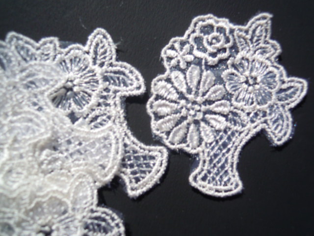 ホーム | スリーコインズ(300円)・レース > アップリケレースお買い得なオフシロのオーガンジモチーフレース  10枚入り