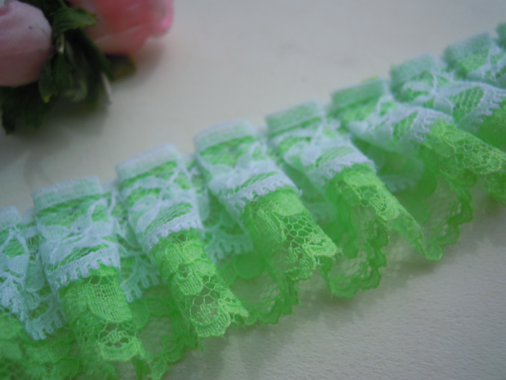 ホーム | スリーコインズ(300円)・レース > ゴスロリレース(2重フリル)メッチャ可愛いゴスロリ 2段レース 若草色Xシロのゴスロリ 2M