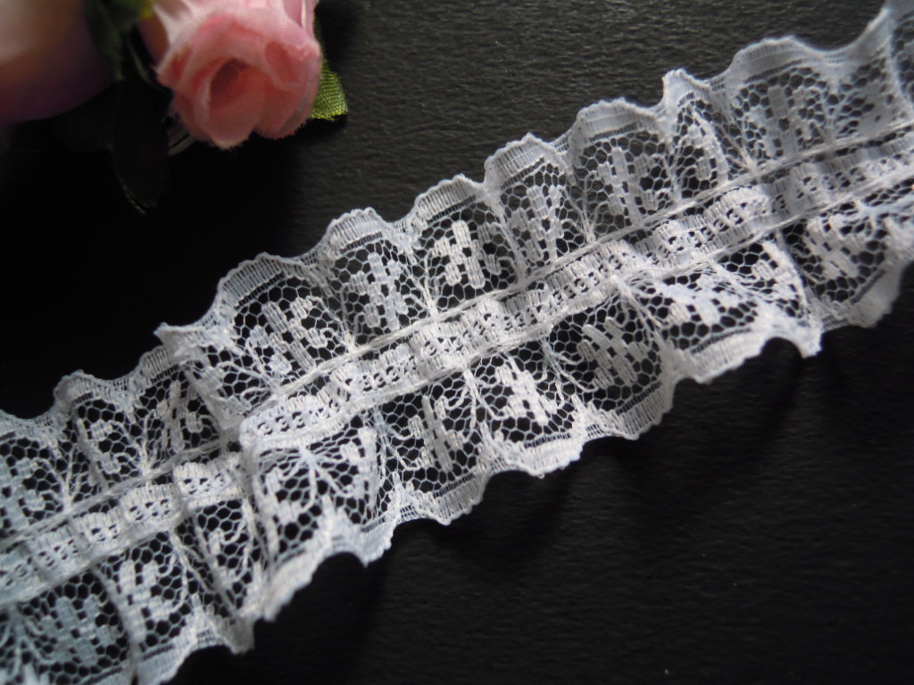ホーム | お求めやすいワンコイン(100円)レース > ラッセル・ストレッチ・フリル幅約3c シロのフリル 1.2M