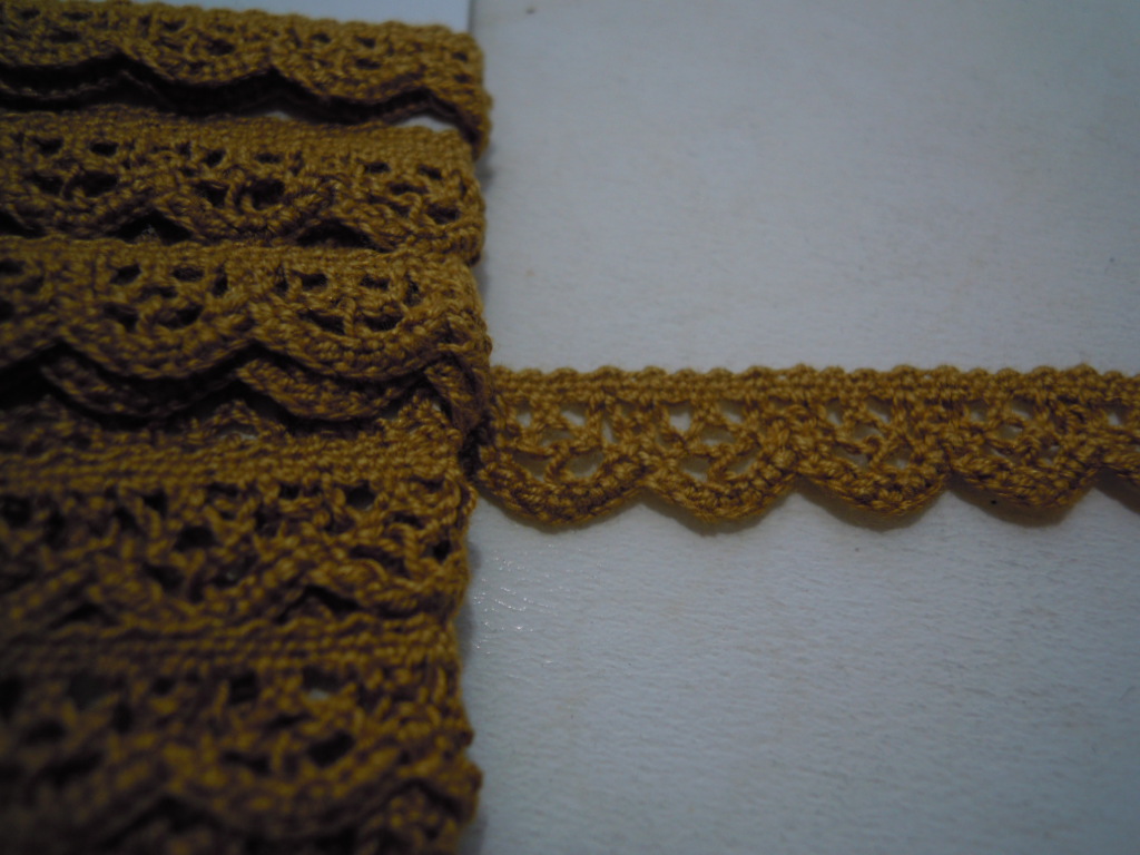 ホーム | 細巾レース(反売り) > トーションレース幅1c カラシ色の人気の綿トーションレース 10M ◎