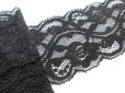 ホーム | お求めやすいワンコイン(100円)レース > ラッセル・ストレッチ・フリルハンパ物!在庫処分!  クロの可愛い花柄の高級ストレッチラッセルレース 1.5M