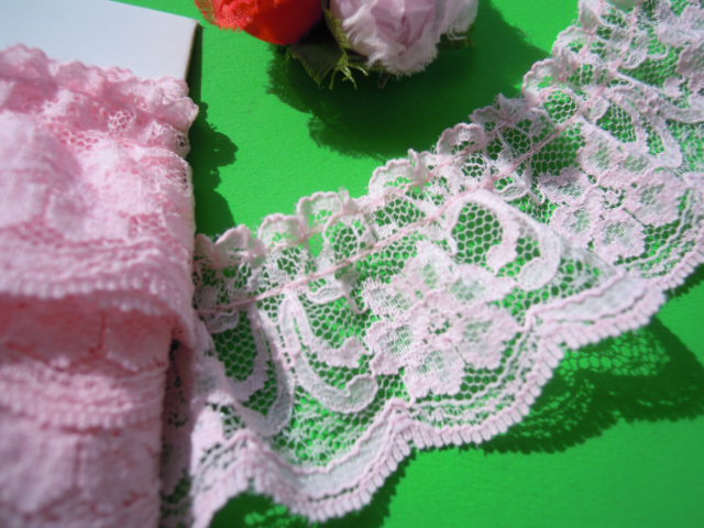 ホーム | お求めやすいワンコイン(100円)レース > ラッセル・ストレッチ・フリル幅約3.7c 可愛い人気のピンクのフリル 1.2M