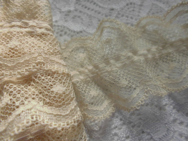 ホーム | スリーコインズ(300円)・レース > ラッセルフリルレース幅約4.6c 人気のベージュの両山・フリル・3M