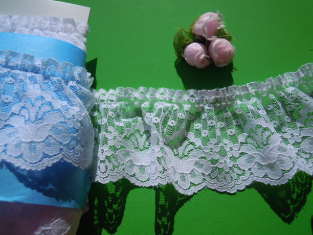 ホーム | お求めやすいワンコイン(100円)レース > ラッセル・ストレッチ・フリル幅約6.3c 可愛い人気のシロのフリル 1M