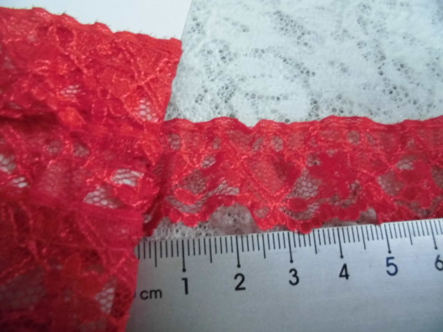 ホーム | お求めやすいワンコイン(100円)レース > ラッセル・ストレッチ・フリル可愛い人気のアカのフリル 1.5M