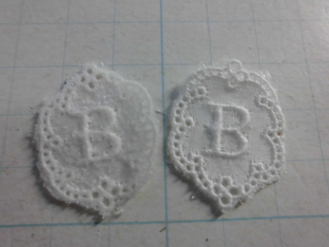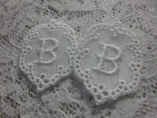 ホームアイロン接着 レース工房☆太陽のぴたっとレースアイロン接着!!!レース工房☆太陽のぴたっとレース 手作りマスクのアクセントに如何!綿のイニシャルモチーフレース B 2枚