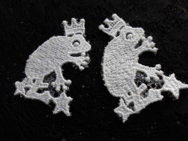 ホームアイロン接着 レース工房☆太陽のぴたっとレース手作りのマスクに如何!アイロン接着!レース工房☆太陽のぴたっとレース エレガントで繊細な幸福を呼ぶ?カエル柄の綿モチーフレース 2枚