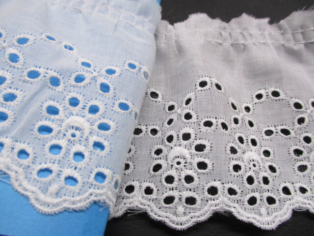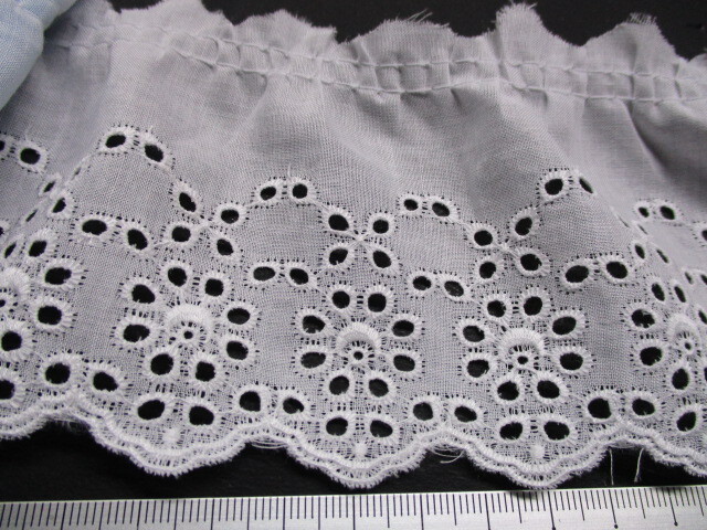ホーム | スリーコインズ(300円)・レース > 綿フリルレース幅約8c 可愛いバラ柄のフリル シロ 1.5M
