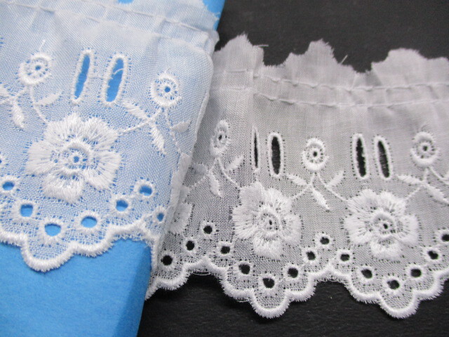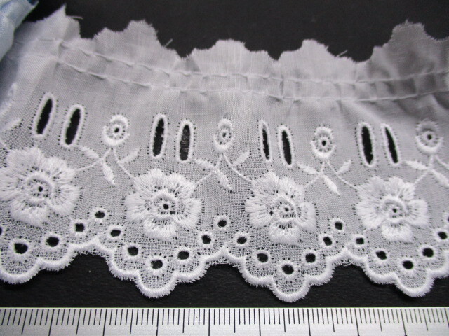 幅約5.5c 可愛い花柄のリボン通しの綿フリル シロ 2M[3MF-00650 送料最安値 定形外郵便140円]