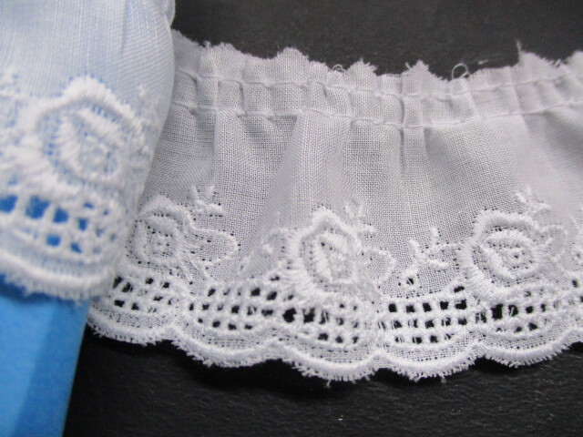 幅約4.3c 可愛いバラ柄のフリル シロ 2.5M[3MF-00652 送料最安値 定形外郵便140円]