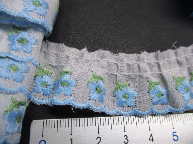 幅約2.3c 可愛い白地にブルーのバラ柄のフリル 3M[3MF-00654 送料最安値 定形外郵便140円]