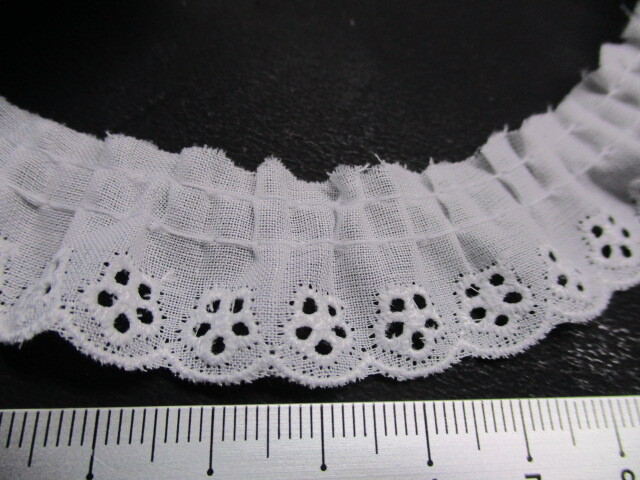 幅約2c 可愛い花柄の綿フリル シロ 3M[3MF-00655 送料最安値 定形外郵便140円]