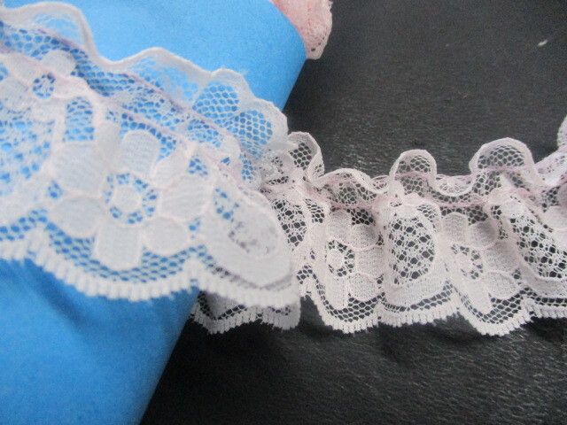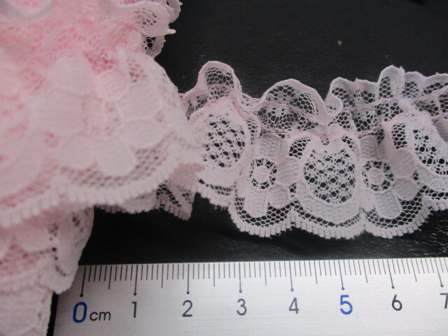 ホーム | 細巾レース(反売り) > 人気のラッセルフリルの原反売りメッチャお買い得な数量限定!特価品!!!ピンクの人気のラッセルフリル原反売り●