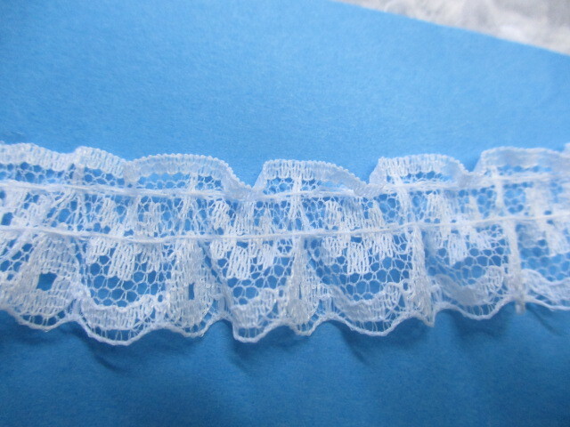 ホーム | 細巾レース(反売り) > 人気のラッセルフリルの原反売りメッチャお買い得な数量限定!特価品!!!シロの人気のラッセルフリル原反売り●