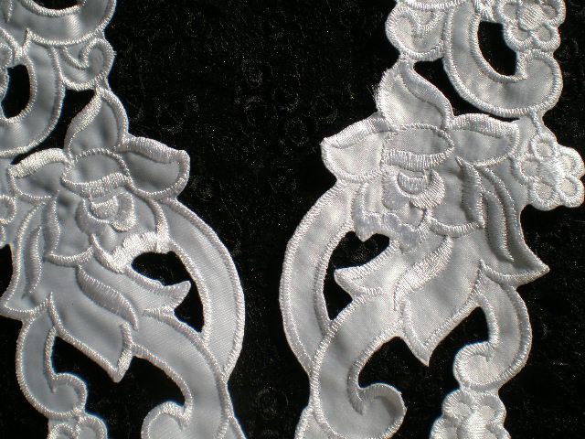 シロのサテン地にコード・ブライダルモチーフレース 1組(2枚)[BR-00007 送料最安値定形外180円]