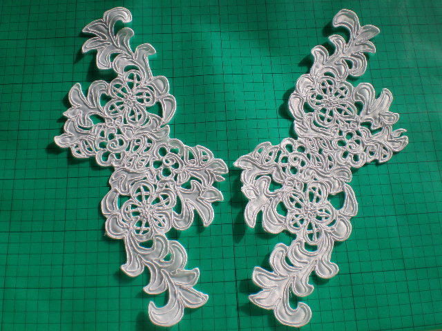 シロのサテン地にコード・ブライダルモチーフレース 1組(2枚)[BR-00008 送料最安値定形外140円]