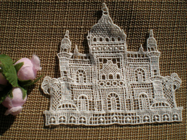 ホーム | スリーコインズ(300円)・レース > アップリケレースアンテイーク調のとても繊細なキャッスル柄の綿ケミカルモチーフ