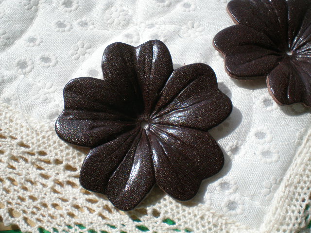 約6c 日本製 チョコ色のヌメ皮 花柄モチーフ 2個入り