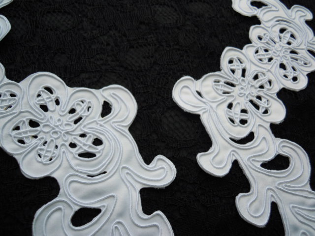 シロのサテン地のコード、ブライダルモチーフレース 2組4枚[BR-00071 送料最安値 ゆうパケット173円]