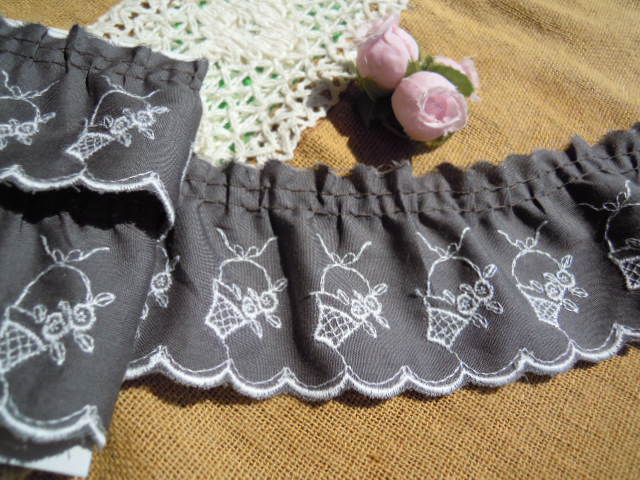 ホーム | 細巾レース(反売り) > 綿フリルレース大幅値下げ! カーキ色の可愛いブーケ柄 5M