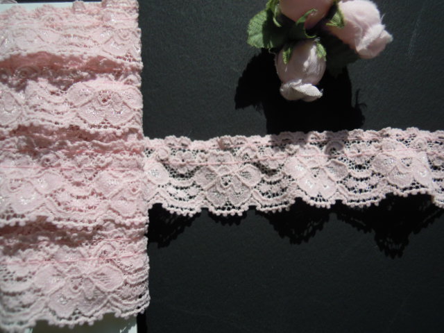 ホーム | 細巾レース(反売り) > ラッセルフリルレース肌に優しいピンクベージュのフリル 10M