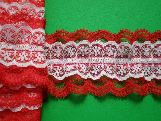 ホーム | スリーコインズ(300円)・レース > ゴスロリレース(2重フリル)幅4.7cアカxシロのゴスロリ・2M