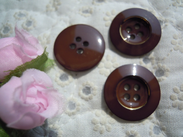 21mm エレガントなチャとゴールドカラーボタン 3個入り[GRB-00168 送料最安値 定形郵便110円]